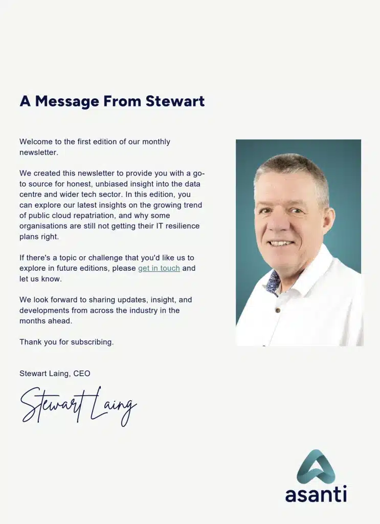 Welcome to the first edition of our monthly newsletter. We created this newsletter to provide you with a goto source for honest, unbiased insight into the data centre and wider tech sector. In this edition, you can explore our latest insights on the growing trend of public cloud repatriation, and why some organisations are still not getting their IT resilience plans right.